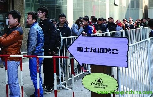 楼下排起了长队。青年报记者 施培琦 摄 昨天,为期18天的第三轮迪士尼一线员工线下